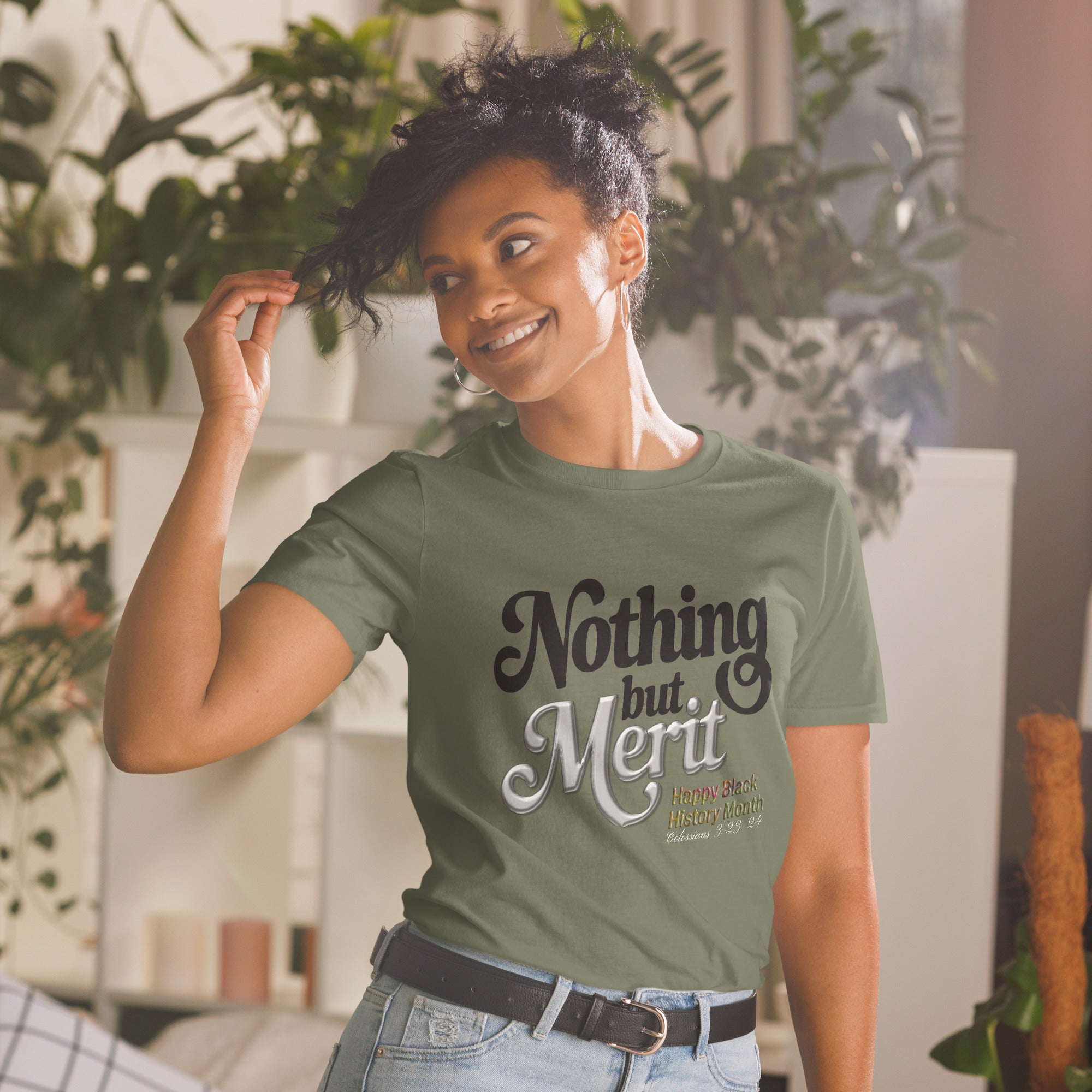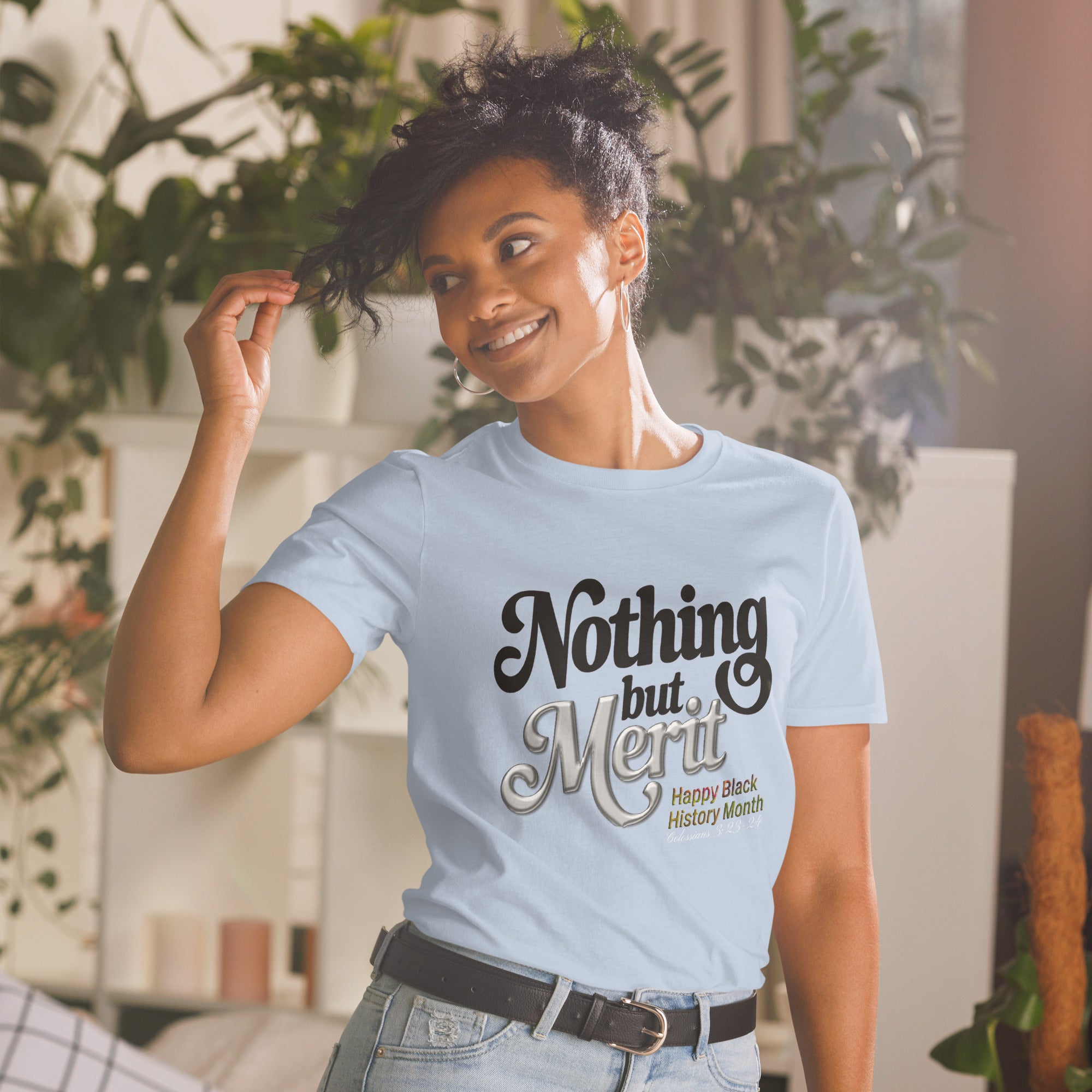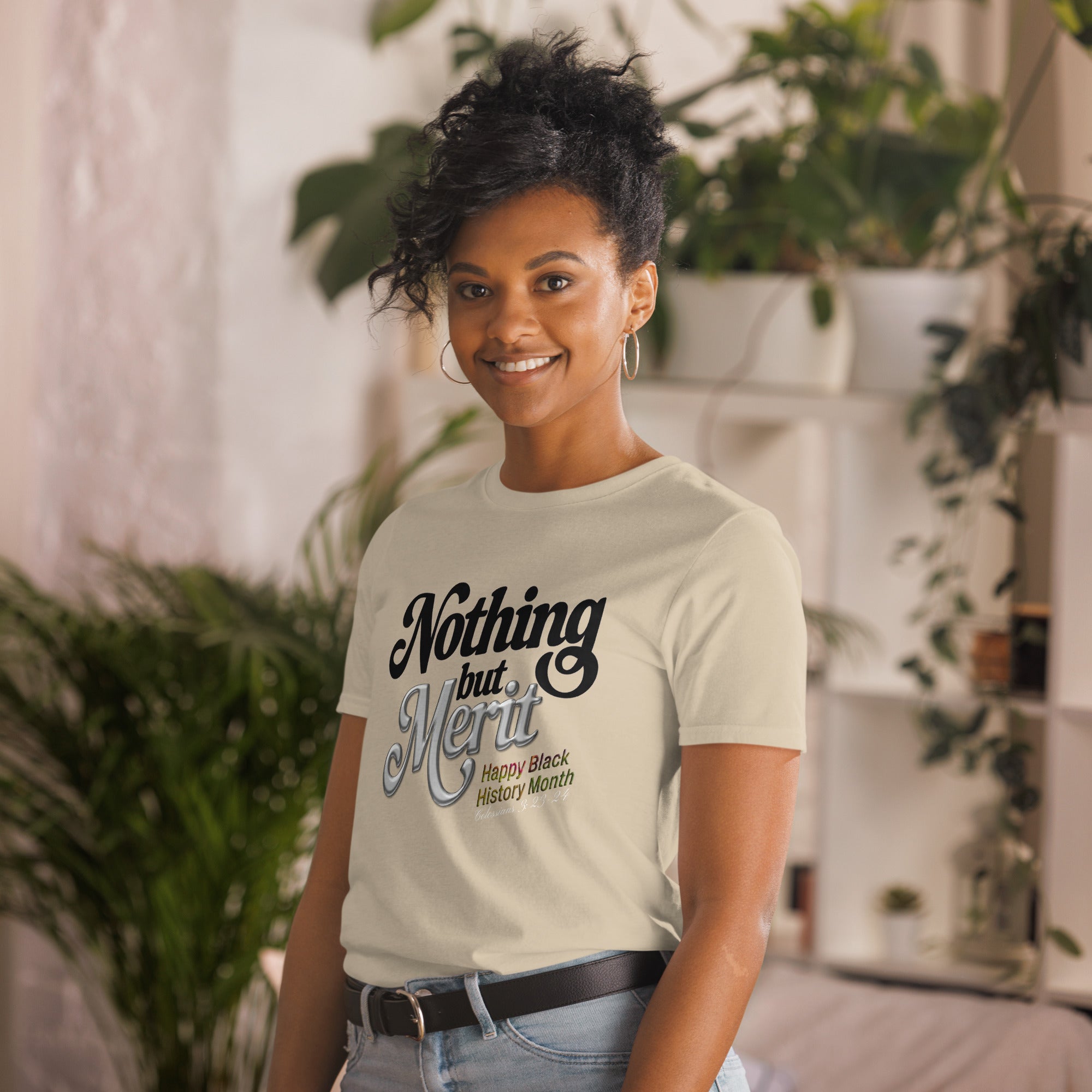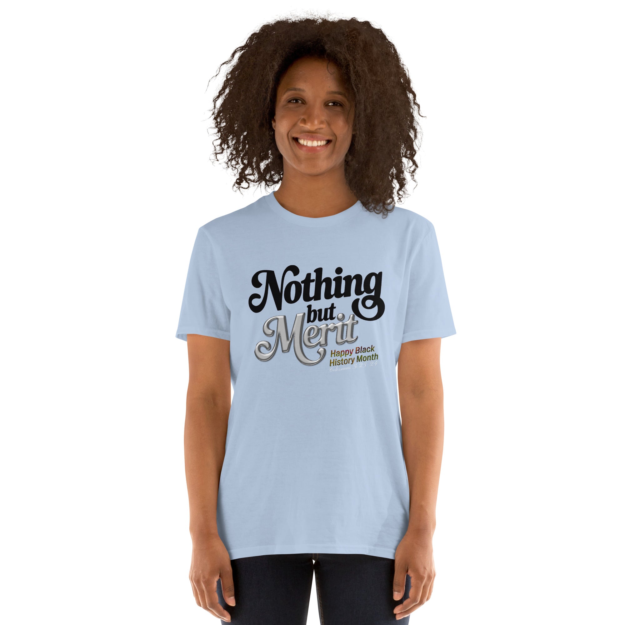 Inspirational T-Shirt, Faith-Based Apparel, Black History Month, Nothing But Merit, Colossians 3:23-24, Premium Ring-Spun Cotton, Durable T-Shirt, Ethical Sourcing, Christian Fashion, Cultural Legacy.