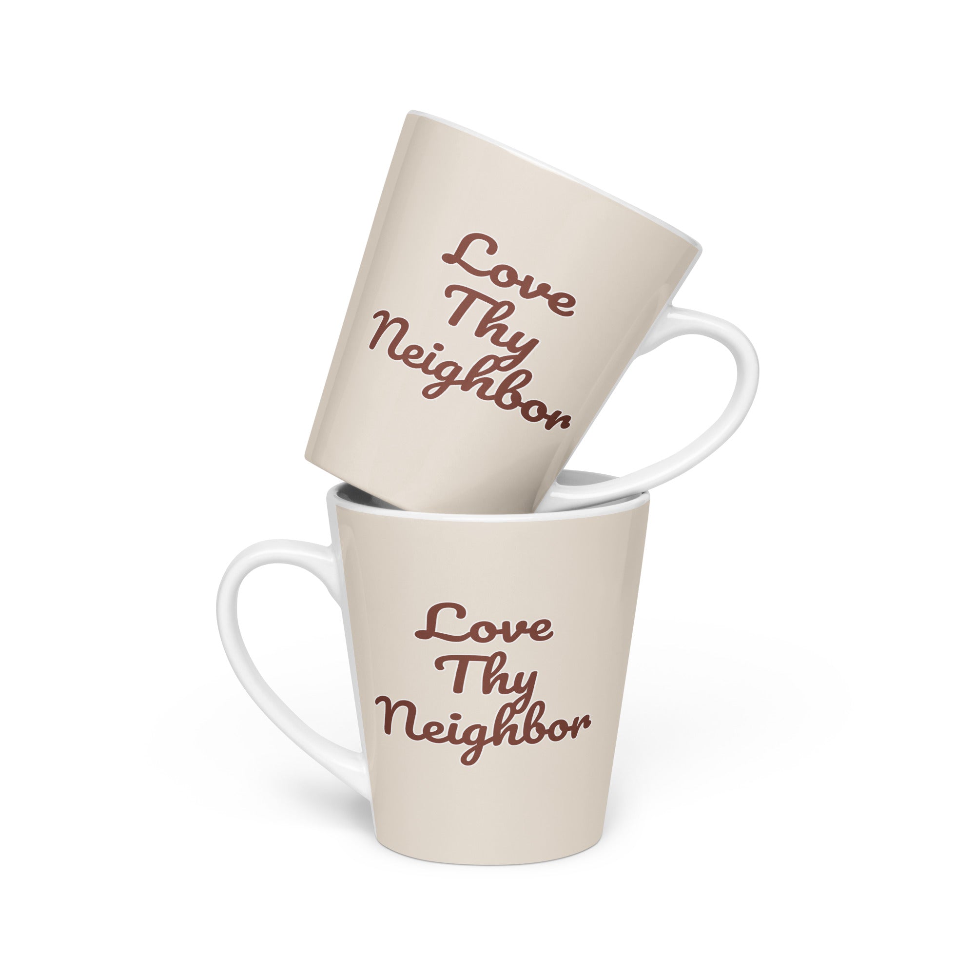 The Love Thy Neighbor™ Latte Mug is designed for unhurried coffee rituals, cozy evenings, and moments of reflection. Its soft café-cream finish and warm hand-lettered script bring a sense of calm to your daily routine—whether you’re starting the day with intention or winding down with tea at night.
